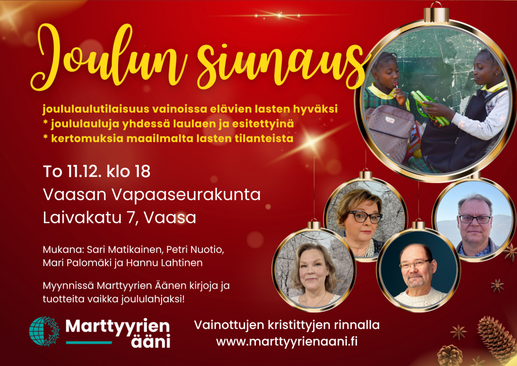 - To 11.12. klo 18.30 Marttyyrien ääni -tilaisuus